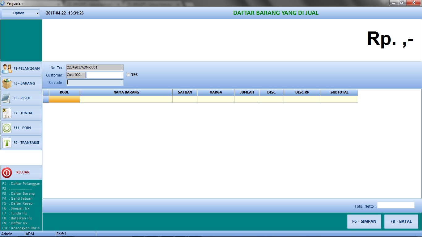 PRODUKProduk kami mulai dari Penjualan/Pembelian, Stok, Keuangan, Penggajian, dan Akuntansi. Semua modul terintegrasi menjadi laporan-laporan yang sangat membantu manajemen untuk memutuskan arah kebijakan usaha/toko. Kami juga dapat melayani permintaan custom dari yang berbasis desktop, web, maupun mobile (Android).